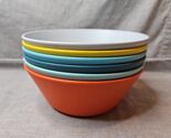 Lot of 6 Multicolor Cereal Bowls, Hard Plastic, 6.75'' Diameter/2.5'' Depth