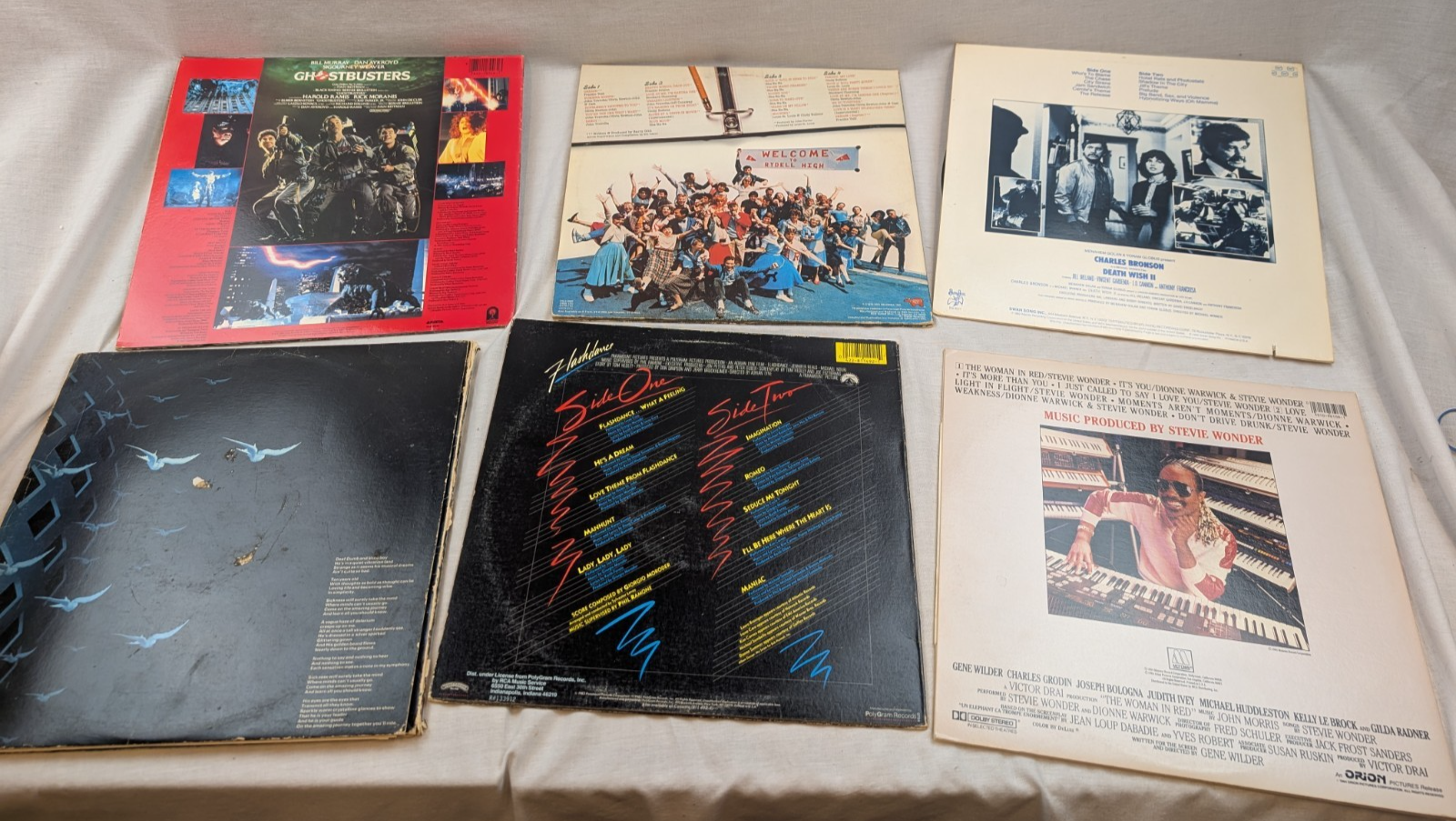 Up for sale is a Lot of 6 Soundtrack Vinyl LPs - Grease (2X LP 1978), The Who Tommy (2X LP Trifold) Death Wish II (Jimmy Page), Ghostbusters, Flashdance The Women in Red