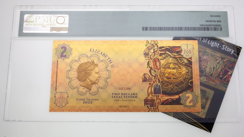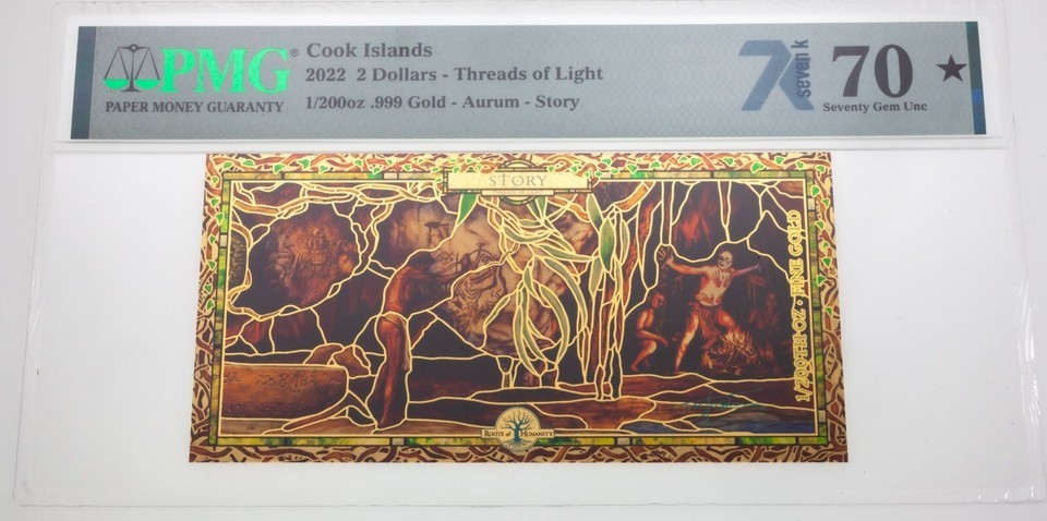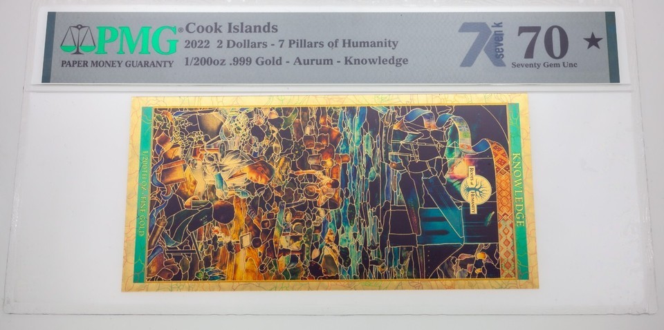 - Lot of 7 Pillars of Humanity Cook Islands Gold Notes PMG Gem 70