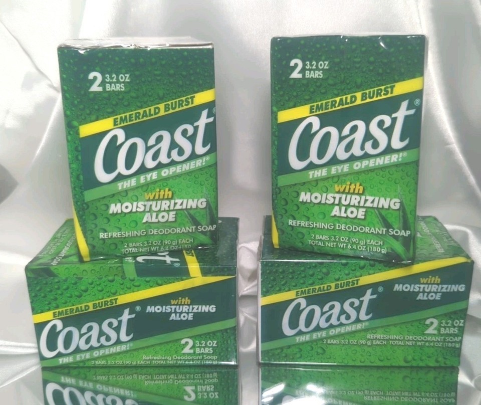 Lot of 8 Coast Emerald Burst Bar Soap w/ Aloe ? The Eye Opener ? 4 oz Each ? NEW SEALED ? Description: Wake up your senses with this lot of 8 Coast Emerald Burst Bar Soaps featuring moisturizing aloe and the signature "Eye Opener" scent. Each 4 oz bar delivers a crisp, invigorating clean with rich lather and skin-softening moisture. ? Product Features: Scent: Emerald Burst ? ?The Eye Opener? With: Moisturizing Aloe Size: 4 oz per bar (Total 32 oz) Quantity: 8 Bars Condition: Brand New Factory Sealed Perfect for stocking up, care packages, or refreshing your daily shower routine. ? Ships fast and securely packaged!