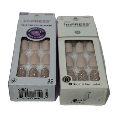 Lot of 8 KISS imPRESS Press-On Nails Short Length – No Glue Needed Gel Mani Sets