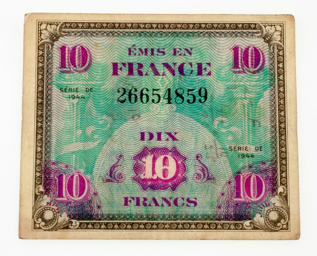 Lote De 2 Guerra Mundial Francia Notas (1916 10 VG 1943 5 MB) Bonito