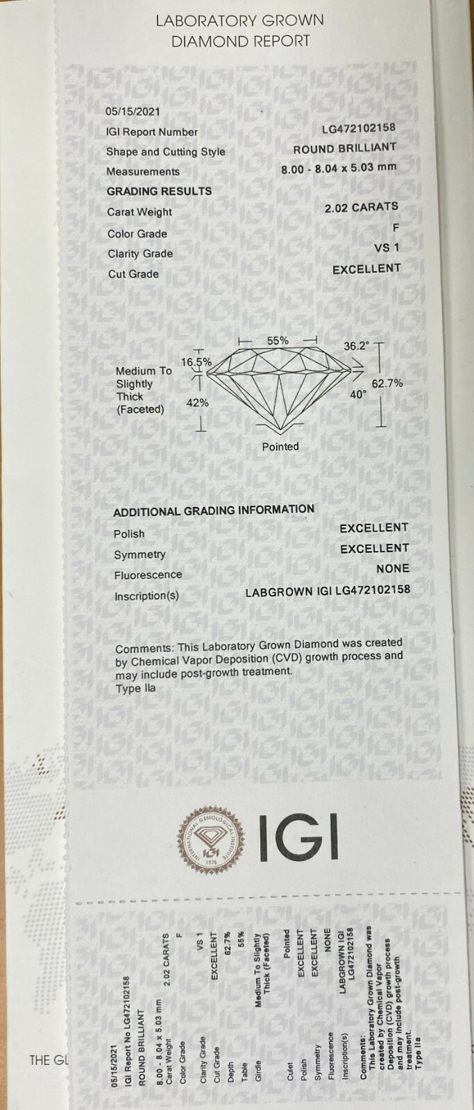 · 2,02 ct taglio rotondo cvd diamond f color vs1 chiarezza