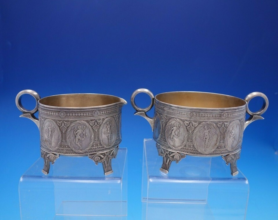 - Lotus by Whiting Sterling Silver Sugar Creamer Set 2pc #402 Art Nouveau (#4345)