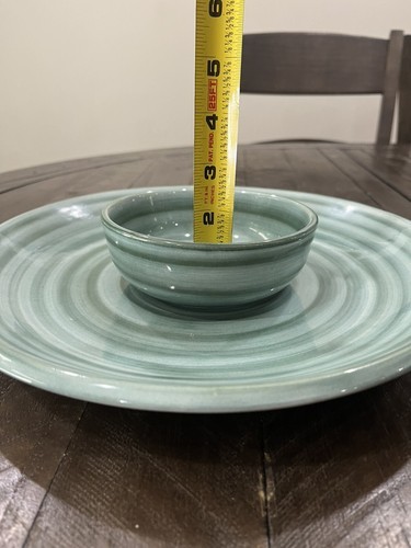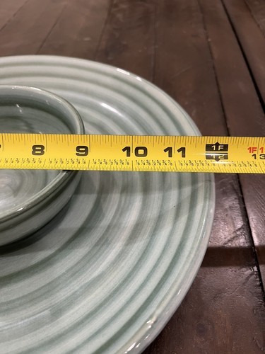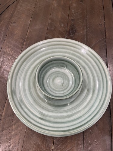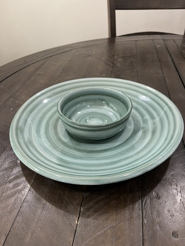 - Louisville Stoneware Pottery Green Circle Swirl Chip n' Dip Tray Kentucky 12”