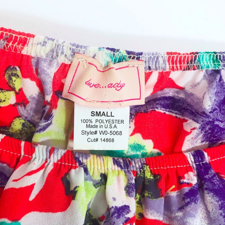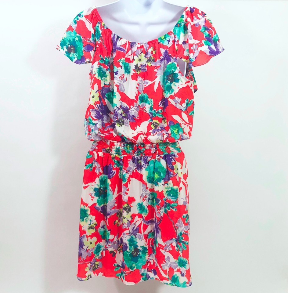 ***Make us an offer*** EUC, Excellent Used Condition. Love...Ady bright color floral print mini dress just looks like summer. The ruffles at the bodice and sleeves are a pretty accent. The waist has a wide ruched band. You can wear this fun mini dress with the elastic sleeves off the shoulder if you want. Very light weight! Perfect for dates, shopping, everyday. No rips, tears or stains. Brand Love...Ady Made in the USA 100% Polyester Across the shoulders 15 inches Arm pit to pit 15.5 inches Length shoulder to hem 30 inches US Size Women's Small SKU FF-1-02-23-020 Yes, we combine orders whenever possible. If does not combine the shipping on your orders correctly; when we combine he items and check the shipping; if it is less than the shipping charges that you paid; we will issue you a refund for the difference.