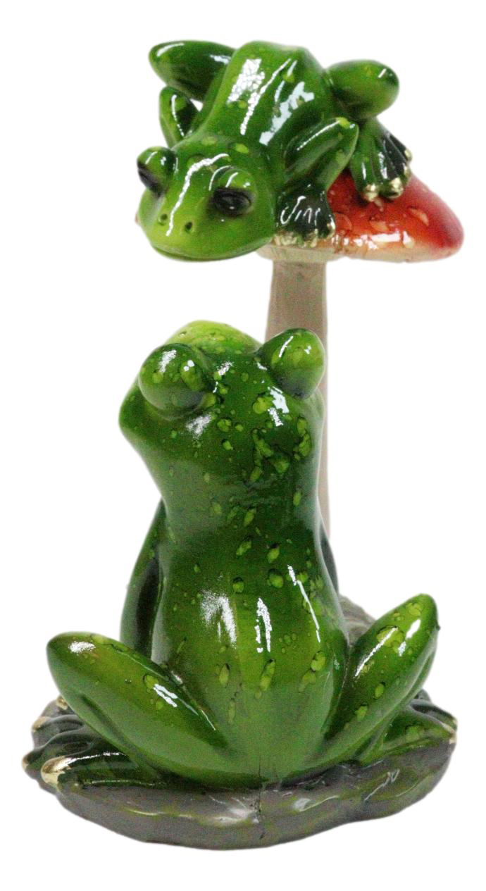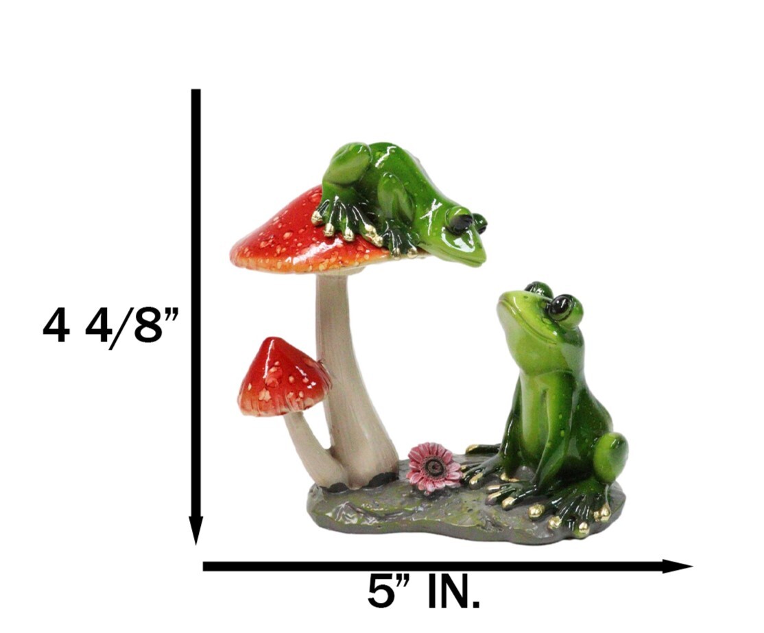 - Love Affair Green Pond Frogs Couple in Courtship by Toadstool Mushrooms Figurine