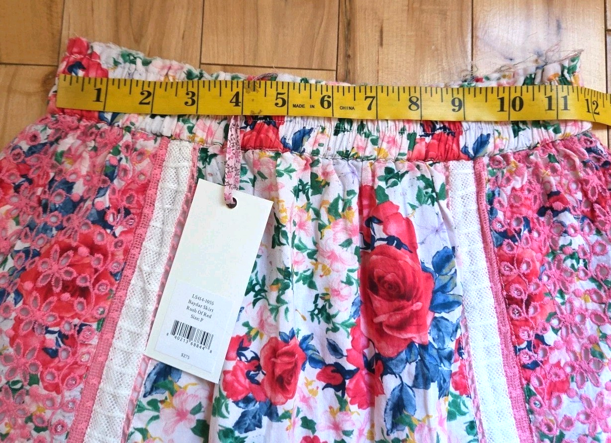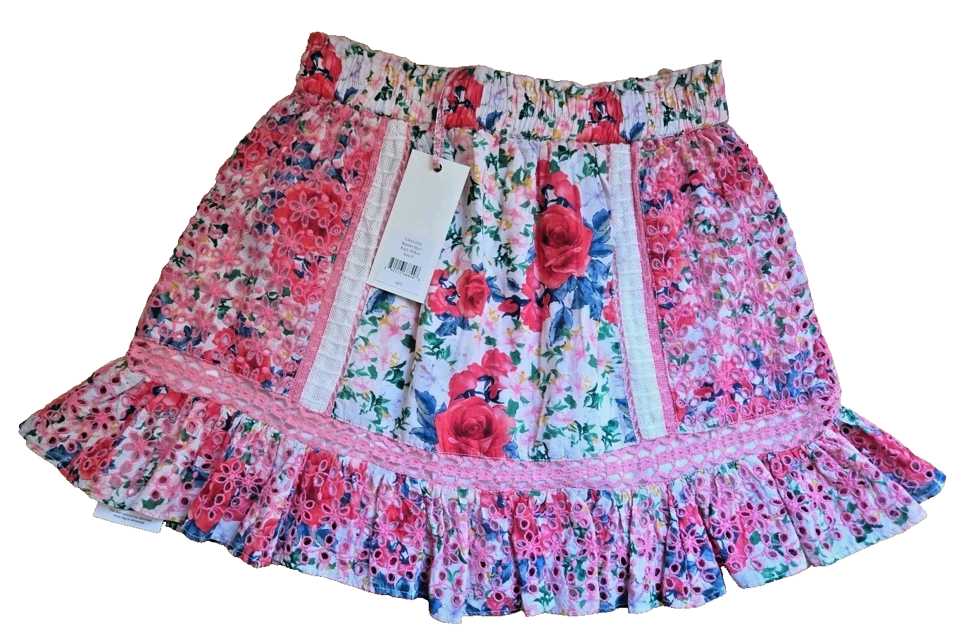 - Love Shack Fancy Baydar Floral Ruffle Lace Mini Skirt Rush of Red Sz Petite New