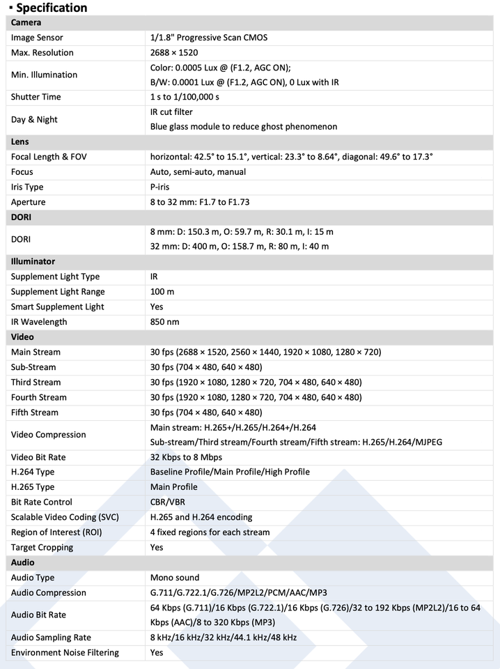 Platinum, IP, Bullet, LPR, IP, 4MP, 8 - 32mm, Auto Focus VF Motorized Lens, Matrix IR up to 328ft, True WDR 140dB, BLC, HLC, MicroSD Card Slot up to 256GB