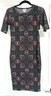 LuLaroe Womens Julia Bodycon Dress XXS Boat Neck Geometric Gold Purple Blue Pink