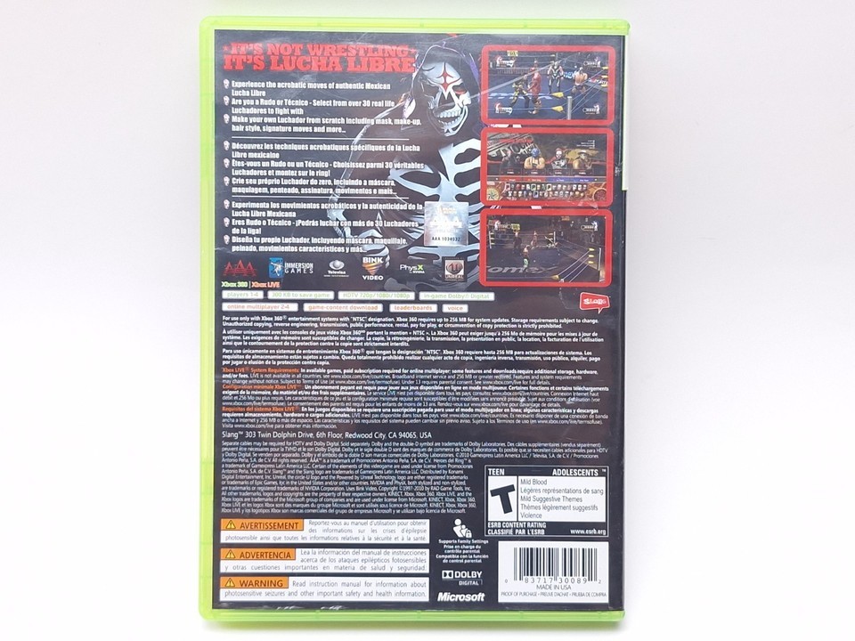 Lucha Libre AAA: Heroes del Ring (Xbox 360, 2010) Complete CIB w/ Manual Tested Case has some sticker residue - Disk in excellent condition RETURNS Your satisfaction is most important so if anything is not as you expected, we will do our best to turn that around and if we cannot, returns are accepted SHIPPING Canada East Coast 2 - 6 Business Days Canada West Coast 3 - 9 Business Days United States 2 - 9 Business Days International 12 - 30 Business Days PAYMENTS 1. We accept PayPal 2. All major credit cards are accepted through secure payment processor PayPal. 3. Payment must be received within 7 business days of auction closing. 4. If you have bought multiple items from me, you can send me one payment for all the items instead of paying for them individually. When you click the Pay Now button, will automatically determine if there are other items you have won or purchased from me and will combine them for your review. NOTE: Import duties, taxes and chargers are not included in the item price or shipping charges. These charges are the buyer's responsibility. Please check with your country's customs office to determine what these additional costs will be prior to bidding buying.