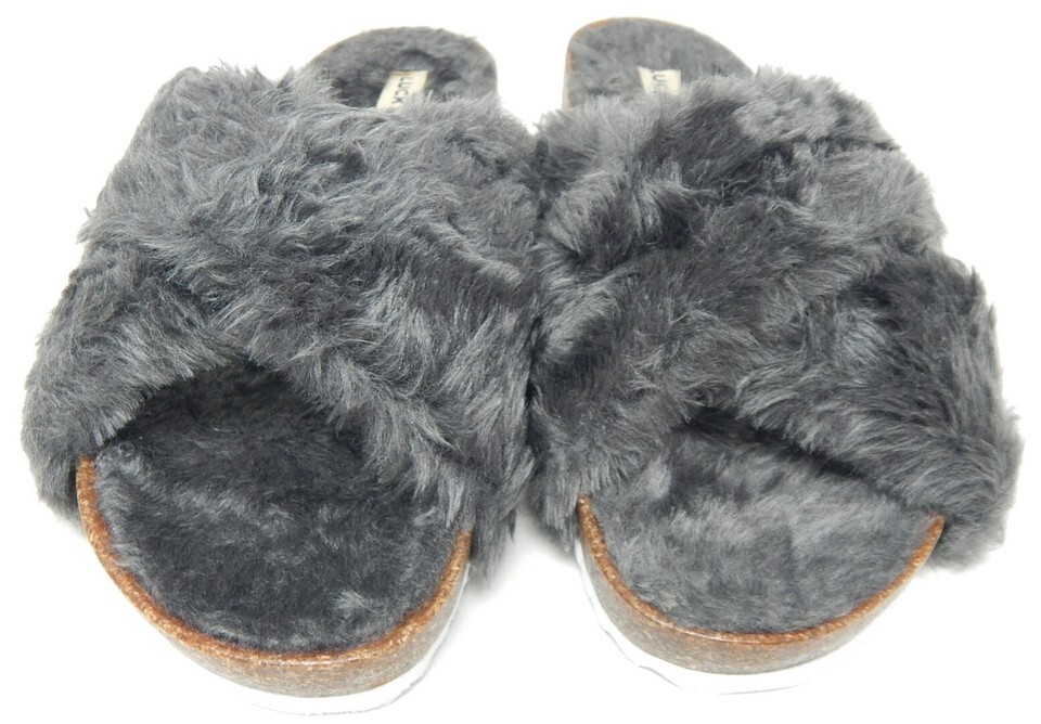 Lucky Brand Marana Size US 9 M Women's Furry Crisscross Slide Sandals Graphite