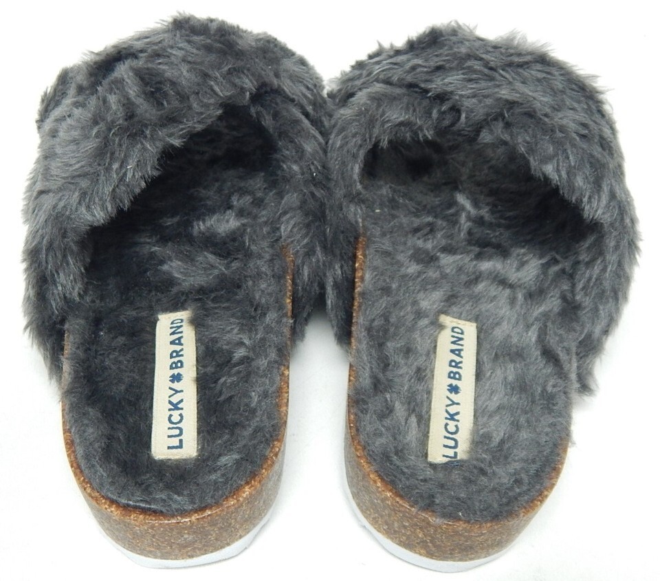 Lucky Brand Marana Size US 9 M Women's Furry Crisscross Slide Sandals Graphite THIS SHOE'S CONDITION: NEW WITH BOX. -Notes: IF THE ITEM IS NOT TO YOUR EXPECTATION WE OFFER A 30 DAY RETURN POLICY. ABOUT US: We specialize in footwear shoe accessories at a highly discounted price. We have a selection of new shoes, and also some displays, demos, pre-owned as well. PHOTOS: New Shoes: We usually send the the exact shoes pictured but may occasionally use our own stock images to represent several shoes. Store Displays, Demos, Pre-owned Shoes: We will send the EXACT shoes pictured here. A NOTE ABOUT OUR PRE-OWNED SHOES: We try to catch everything and describe it in the listing, but there are some things we may miss on occasion. This is why we take several pics of all pre-owned shoes from every angle possible so you as the buyer see what you will be getting. Also, because we are re-sellers we do not know the exact mileage of the shoes. SHIPPING: Shoes are in stock and ready to ship. We have a 1 day handling time but will usually ship same day if you purchase before 3PM Central Standard Time Need the item faster? We offer priority, expedited, and express one- day shipping on nearly all of our items We will combine shipping for expedited and one day deliveries. International Buyers Please Note: Import duties, taxes, and charges are not included in the item price or shipping cost. These charges are the buyer's responsibility. Please check with your country's customs office to determine what these additional costs will be prior to bidding or buying. QUESTIONS? Message us- we are usually very fast at responding! Listing and template services provided by inkFrog