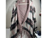 - Lucky Brand Plaid Pink Gray Cardigan Shawl Fringe Sweater Jacket Size Large
