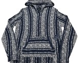 Lucky Brand Sweater Mens M Blue Striped Baja Hoodie Pullover Shirt Boho Hippie