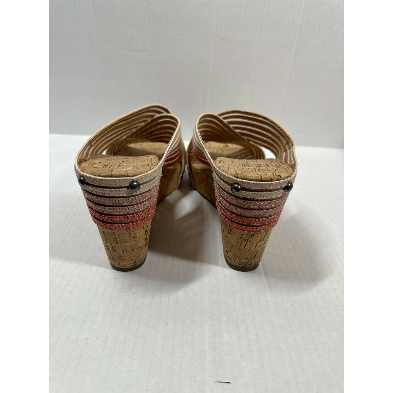 Lucky Brand Womens Mykayla Cork Wedge Sandal Pink Ivory Open Toe Shoes size 10This item has been cleaned pers used clothing policy.