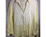 Lucky Brand Womens Top Yellow Roll Sleeve Button Blouse Cotton Blend Sz Medium