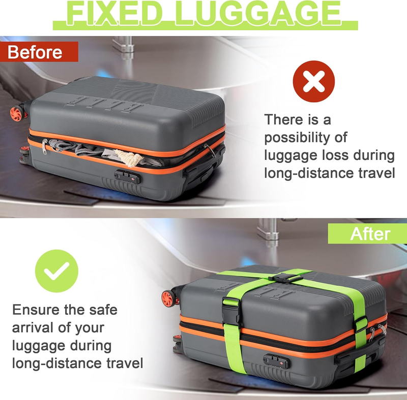 Travel Essentials: Luggage straps can safely secure your travel luggage during long journeys, and you no longer have to worry about violent traffic at the airport causing your suitcase to open. Moreover, by adding luggage straps, the pressure on the suitcase zipper can be reduced, which helps to extend the service life of the luggage