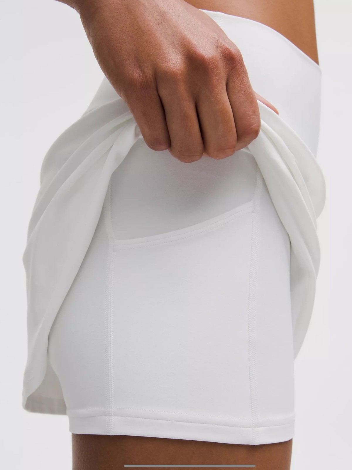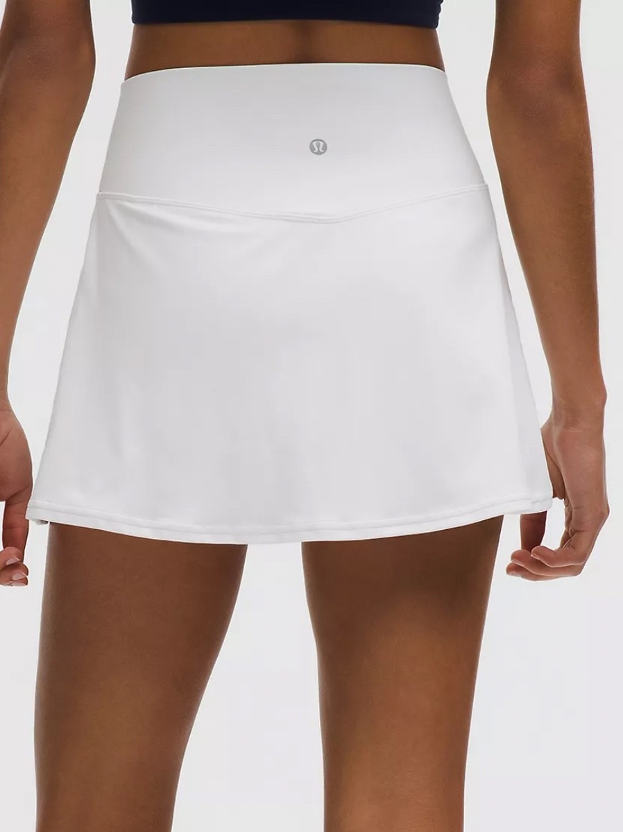 The skirt's high-rise design provides a flattering fit, while its solid color and athletic style make it a versatile piece for any season. Machine washable for easy care, it features a convenient pull-on closure and is made to be worn for a variety of occasions. Lululemon's commitment to quality is evident in this garment, made with care in Cambodia and ready to ship via USPS.