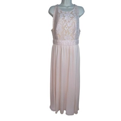 The Lulus Forever and Always Blush Pink Lace Maxi Dress in size Large is a beautiful and elegant option for weddings, parties, proms,bridesmaids or formal events. This sleeveless dress features a floral pattern, a scoop neckline, and a zip closure. Made from lace fabric with pleated, ruffled, layered, and embroidered accents, it has an empire waist and is lined for added comfort. The long dress length and pink color give it a feminine and romantic look, perfect for those who want to feel like they are forever and always in love. Women ladies junior teenager see pictures for measurements gently used with no flaws Offers welcome.Bundle and save! Smoke free pet free home. Ships out next business day Thank you for checking out my closet