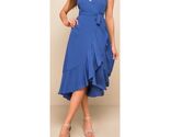 - Lulus Manhattan Moment Blue Ruffled Midi Wrap Dress Womens Size Small