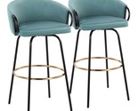 Chic modern style shines bright with the unique design of the Claire Bar Stool by LumiSource. With a rounded low backrest, sleek black armrests and a black metal frame, it's the perfect piece for your contemporary bar area. The Claire Bar Stool has smooth swivel capability with lush velvet upholstery. Available in various bold colors.