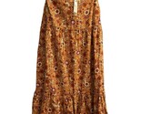 - Luna Moon Skirt Womens M Orange Brown Tiered Floral Maxi Boho Hippie Peasant
