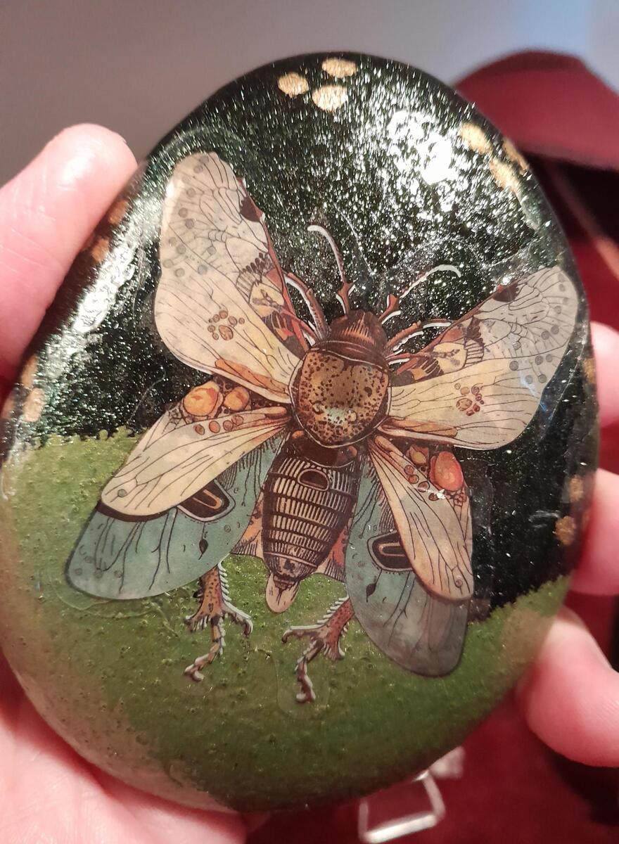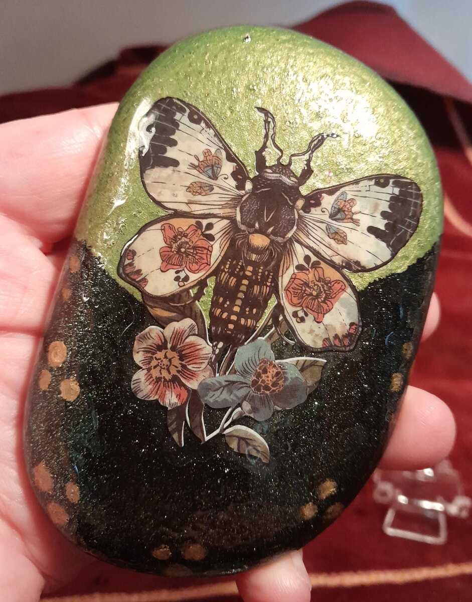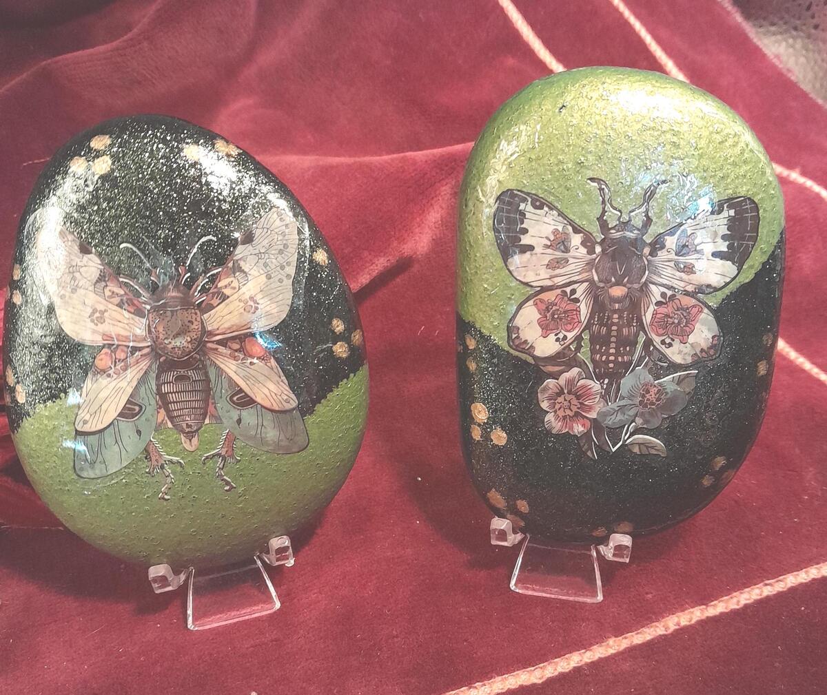 These Moths are just gorgeous. Two separate Rocks painted in colorshift paints and dragonfly glazes are going to be spectacular when resined. You get the Set of 2 mixed media rocks shown. Shades of green perfectly backdrop these amazing Moth decals.