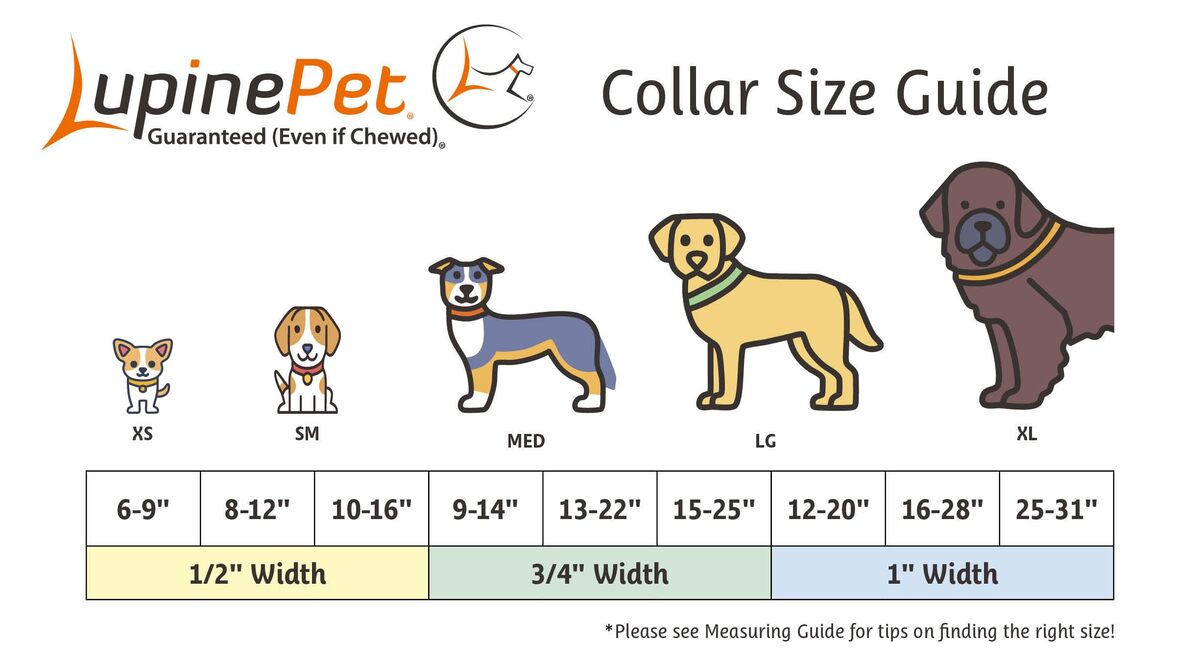Warranty description: Damaged dog collars are covered under our Guarantee! GUARANTEED (Even if Chewed) means we will replace any Lupine Pet brand dog collars, leashes or pet gear, from your original purchase, that has been accidentally damaged during normal pet-related activities, even chewing accidents! For all details and conditions regarding our guarantee, please visit: https://www.lupinepet.com/guarantee/