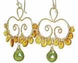 Hammered drop shapes wrapped with amber and vessonite, about 1-3/4".