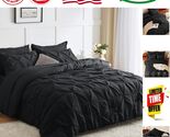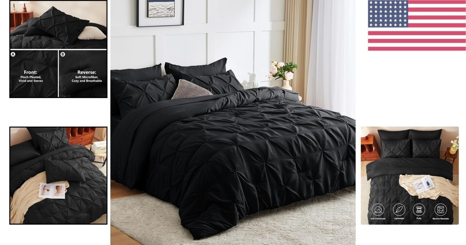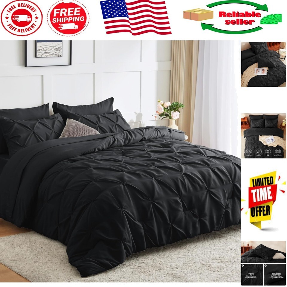- Luxurious 7-Piece Full Size Black Comforter Set – Pinch Pleat & Geometric Design
