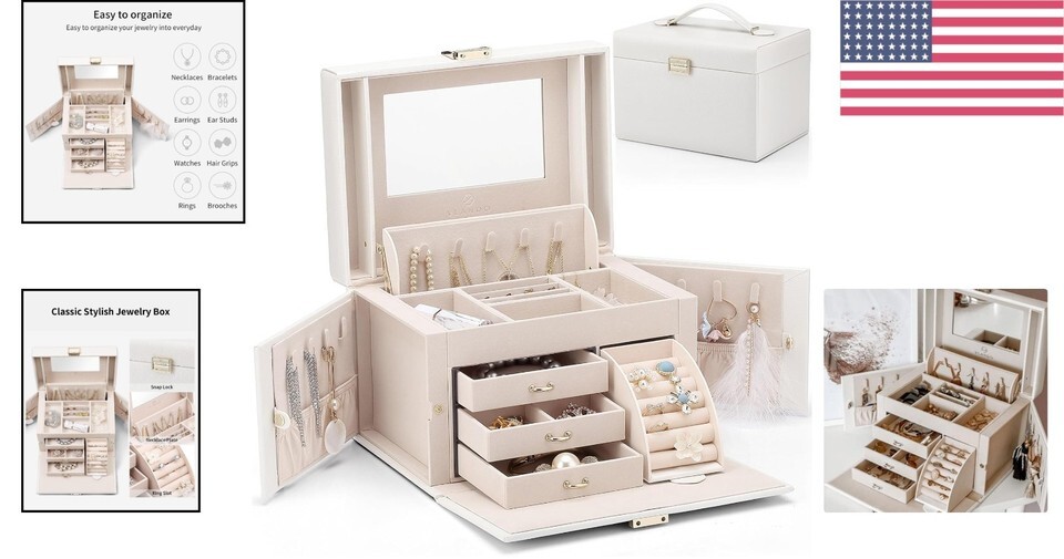 - Luxurious Vintage Jewelry Organizer with Mirror - Perfect for Special Occasions