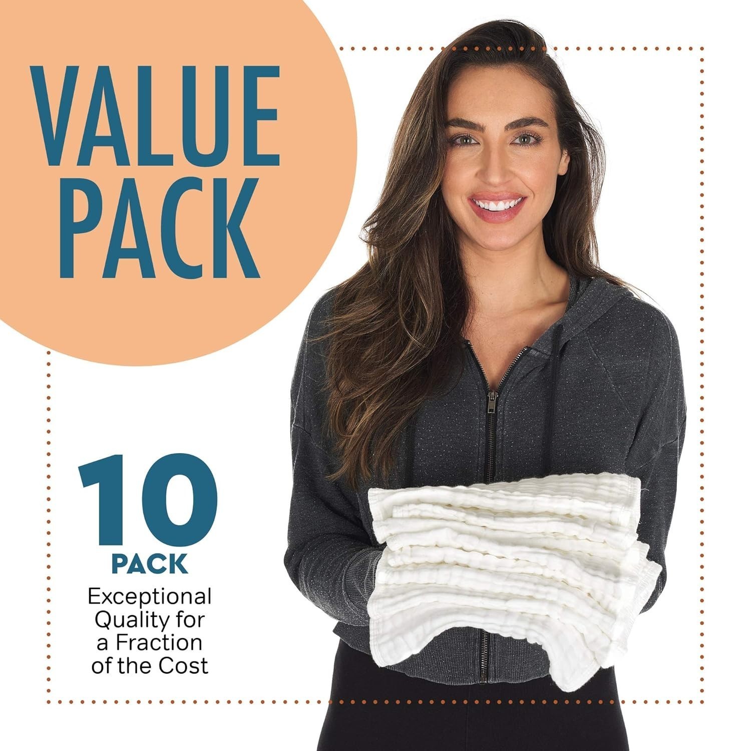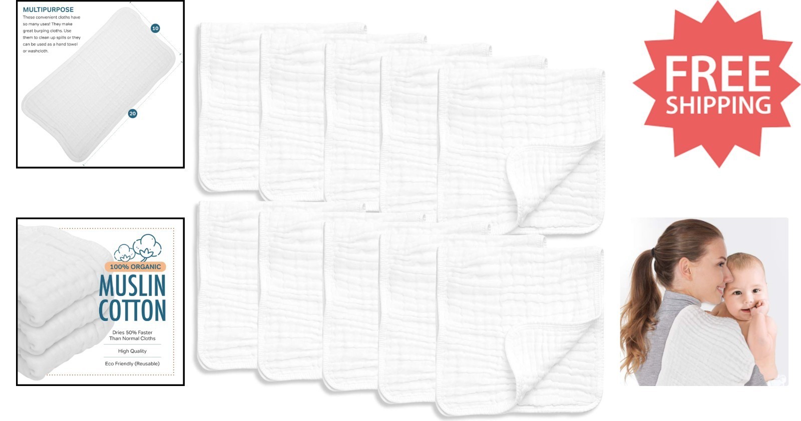 - Luxuriously Soft 100% Muslin Cotton Burp Cloths - Set of 10, 20" x 10"