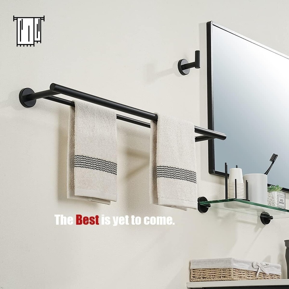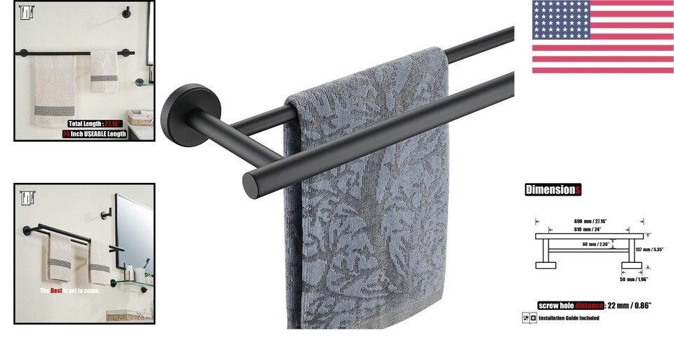 - Luxury 27" Matte Black Double Towel Bar - Durable Stainless Steel Bathroom Rack