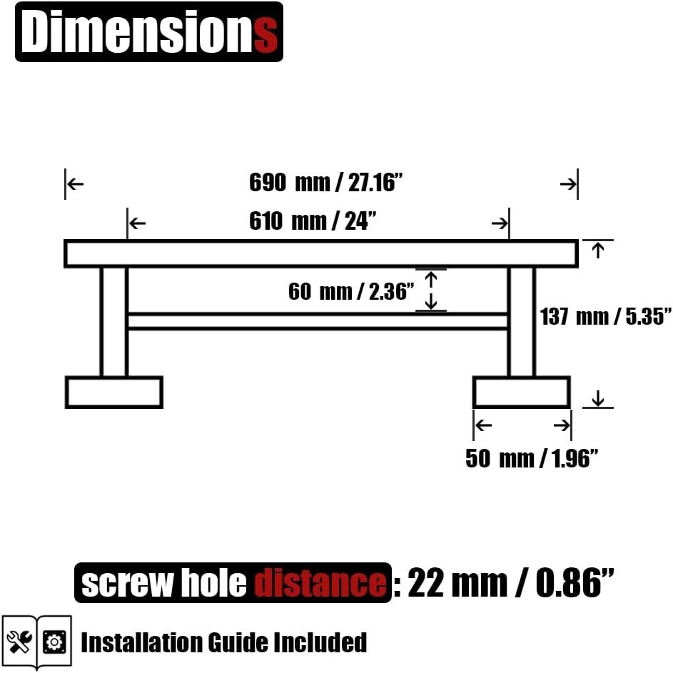 Dimensions: 27.16 x 5.35 x 1.96 inches, with a usable bar length of 24 inches, providing ample space without the hassle of folding towels.