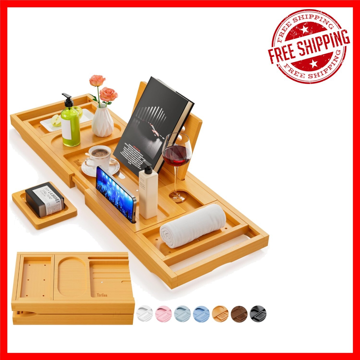 Indulge in the ultimate luxury spa experience right in your own bathroom with our meticulously crafted Bamboo Bathtub Caddy. This exquisitely designed caddy features dedicated spaces for your phone, a wine glass, a candle, and two removable trays to hold your bath essentials. Plus, it includes a complimentary soap holder for added convenience. Treat yourself or a loved one to the indulgent relaxation they deserve!