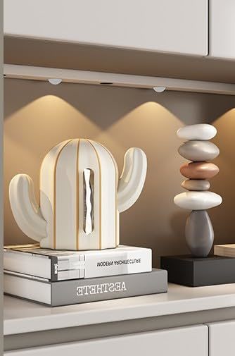 Transform your living space with this striking cactus-shaped tissue box dispenser that marries form and function in perfect harmony. The sleek black finish adorned with elegant gold vertical accents creates a sophisticated statement piece measuring 10.2 x 5.1 x 7.9 inches. This artfully designed dispenser features a discreet opening that maintains the sculptural integrity of the desert-inspired form while allowing smooth tissue access. Perfect for contemporary homes, this versatile piece adds a touch of whimsy and refinement to coffee tables, dining areas, bathroom counters, or office desks. The durable construction ensures lasting beauty, while the timeless black and gold color palette complements various interior styles from modern minimalist to southwestern chic. Make everyday moments more elegant with this unique blend of practical design and artistic expression that turns a simple tissue box into a conversation-worthy decorative accent.