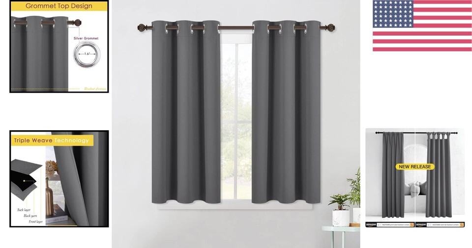 - Luxury Grey Thermal Blackout Curtain Panels for Bedroom - 42x45 Inches, 2 Count