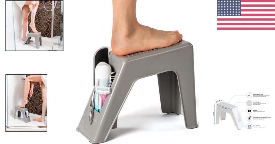 - Luxury Shower Foot Rest with Built-in Storage - Ideal for Shaving & Pedicure