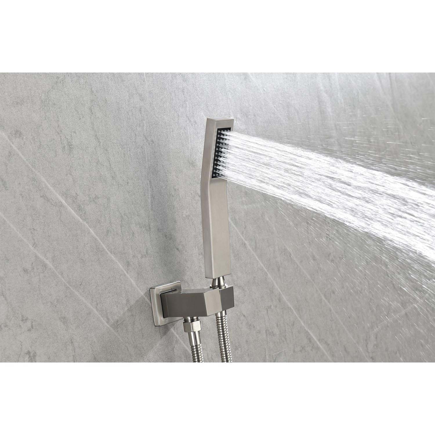 Wall-mounted rain shower systems have clean lines and a sleek look that perfectly match any bathroom style. This shower system is made of brass and high-quality stainless steel for durability. The shower head uses a self-cleaning silicone nozzle, so the water outlet will not be blocked and is easy to clean. When showering, the shower head provides a continuous and powerful shower massage for your whole body, allowing you to relax and enjoy a wonderful shower experience.