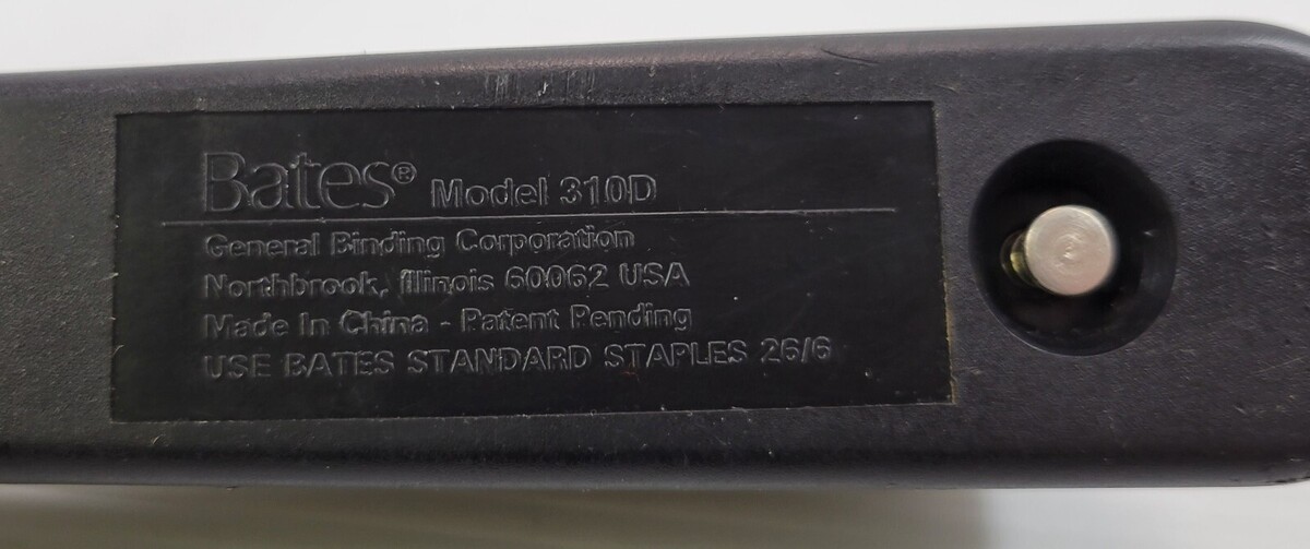 Bates Plastic Desk Office Stapler Model 310D Black Stapler is in overall good used condition. It is old used office inventory.