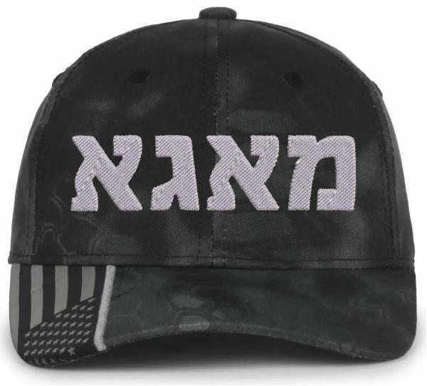 - Embroidered "MAGA" in Hebrew on the front panel.