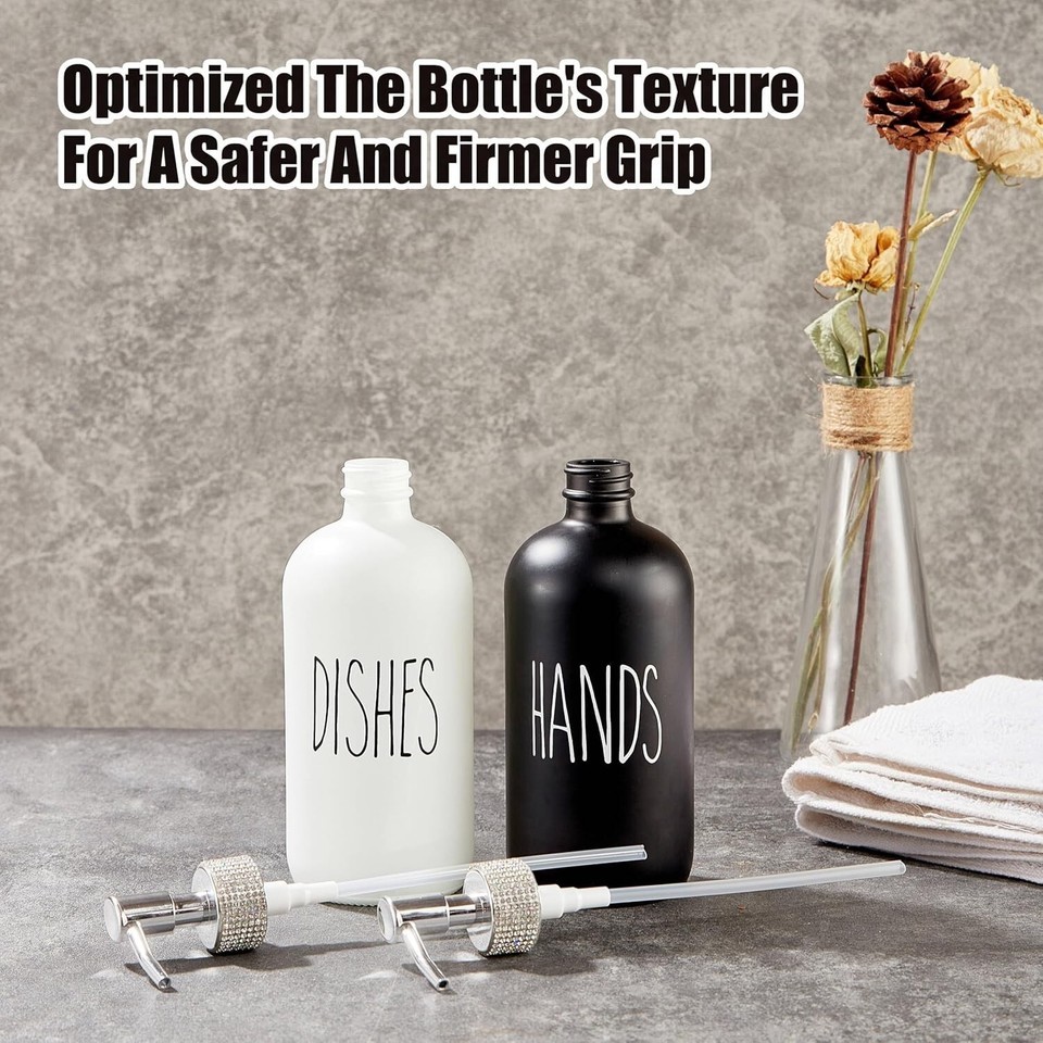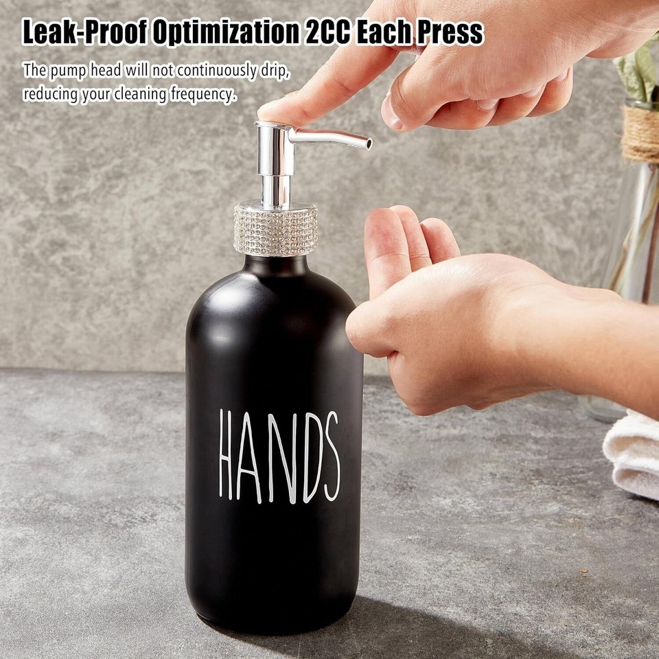 ??Stylish and Robust?: Our hand soap dispenser for bathroom is made from sturdy glass with a high-end, charming diamond-decorated pump head. Not only practical but also aesthetically pleasing, it adds a touch of style to your daily use.