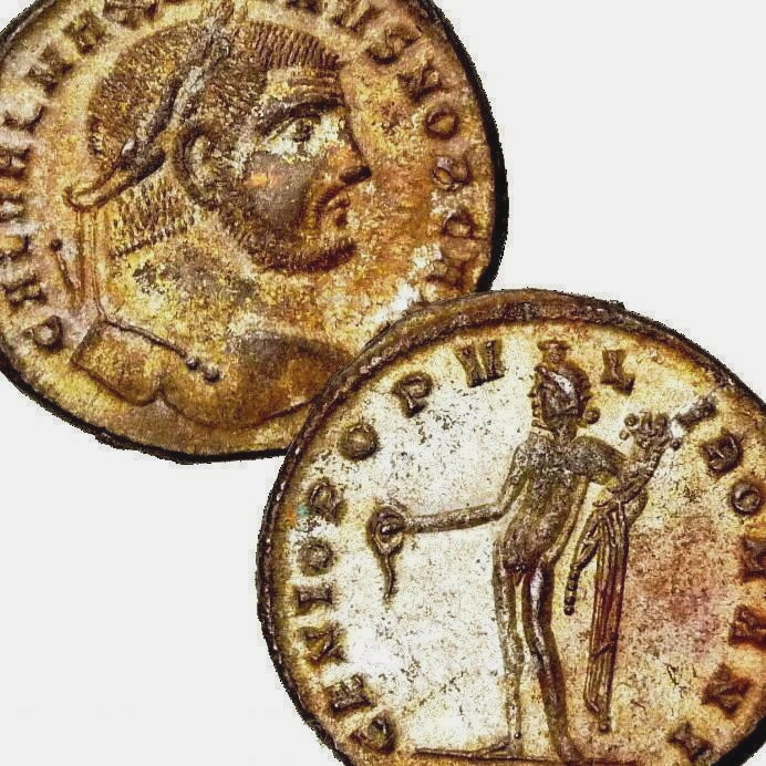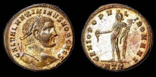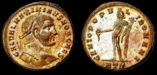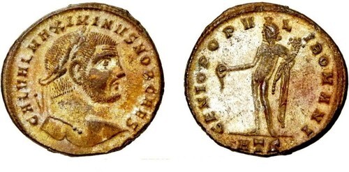 Primary image for MAXIMINUS II/Male figure Genius of Rome Heraclea mint Large Silvered Follis Coin