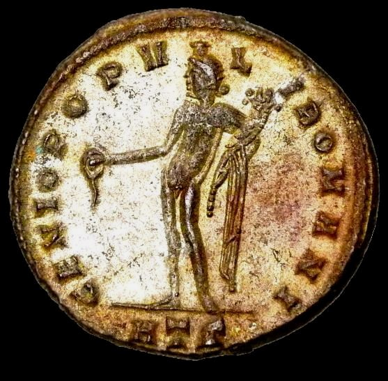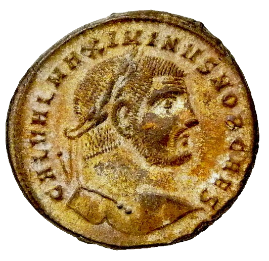MAXIMINUS II/Male figure Genius of Rome Heraclea mint Large Silvered Follis Coin