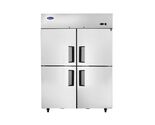 Atosa 4 Half Door Freezer, reach-in, 51-3/4"W x 31-3/4"D x 81-1/4"H with casters, Top mount self-contained refrigeration, 43.2 cu. ft., includes door locks, digital temperature control, -8 to 0F temperature range, (6) adjustable shelves, interior LED lighting, automatic evaporation, air defrost, stainless steel interior exterior, galvanized steel back, 4" casters, R290 Hydrocarbon refrigerant, 3/4 HP, 115v/60/1-ph, 8.6 amps, cord with NEMA 5-15P, cETLus, ETL-Sanitation