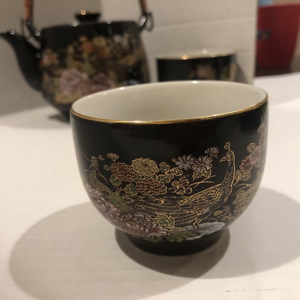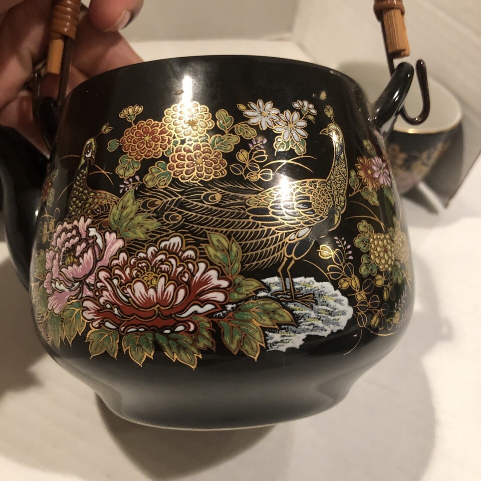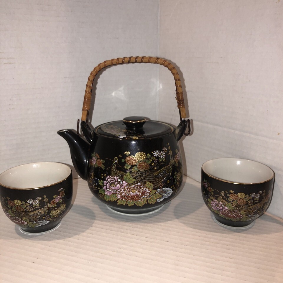 - MCI Japanese Teapot With 2 Cups Gold Trim Floral Birds