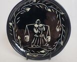 Appears that the white pottery plate was glazed over in black with the design being scratched in before glaze is set. Design has a reverse embossed texture.