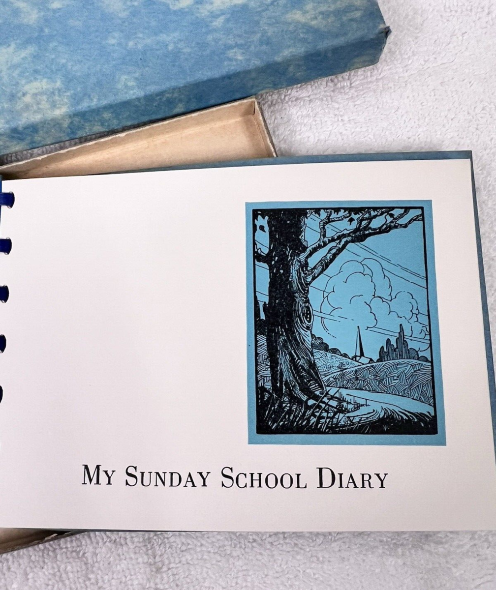 MIB 1926 My Sunday School Diary Autograph Book Never Used But Signed As Gift Never used, however it was given us a gift and signed by the person that gave it please see picture the box has one side that is somewhat loose, but it?s all still there. It?s clean and dry and does not stink.