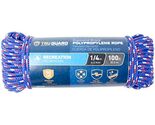 Tru-guard, 1/4 inch x 100', diamond braided polypropylene rope, 95 lb, safety work load, assorted colors black, red white, or red, blue white, light weight floats, Hank.